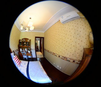 用于制作720度全景动画的全景图常见的是一张长宽比为2:1的长方形照片, 如下图所示,我们可以看到照片中的横竖线条都发生了球形畸变,所以我们又把2:1的全景图叫做矩形球面图。